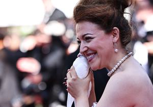 (250516) -- CANNES, 16 mayo, 2025 (Xinhua) -- Imagen del 15 de mayo de 2025 de una invitada llegando a...