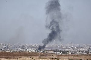 (250516) -- FRONTERA ISRAEL-GAZA, 16 mayo, 2025 (Xinhua) -- Columnas de humo después de ataques israelíes en la Franja de...