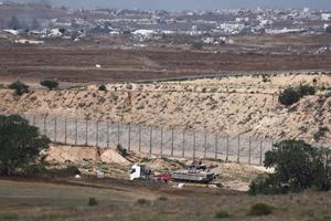 (250516) -- FRONTERA ISRAEL-GAZA, 16 mayo, 2025 (Xinhua) -- Un vehículo militar israelí es visto cerca de la frontera sur...