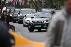 (250516) -- ESTAMBUL, 16 mayo, 2025 (Xinhua) -- La caravana llega a la Oficina Presidencial Dolmabahce para una reunión, en...