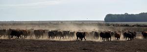 (250516) -- TRENQUE LAUQUEN, 16 mayo, 2025 (Xinhua) -- Imagen del 14 de mayo de 2025 de bueyes corriendo en...