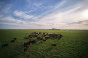 (250516) -- TRENQUE LAUQUEN, 16 mayo, 2025 (Xinhua) -- Imagen del 14 de mayo de 2025 de bueyes pastando en...