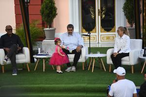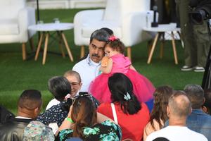 (250515) -- CARACAS, 15 mayo, 2025 (Xinhua) -- El presidente venezolano, Nicolás Maduro (i), sostiene en brazos a la niña...