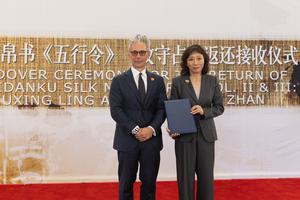 (250516) -- WASHINGTON, 16 mayo, 2025 (Xinhua) -- Los antiguos manuscritos Zidanku en seda del período de los Reinos Combatientes...
