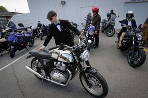 (250519) -- VANCOUVER, 19 mayo, 2025 (Xinhua) -- Imagen del 18 de mayo de 2025 de motociclistas vestidos con atuendos...
