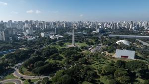(250517) -- SAO PAULO, 17 mayo, 2025 (Xinhua) -- Vista aérea tomada con un dron el 15 de mayo de 2025 del Parque Ibirapuera y el Obelisco de Sao Paulo, en Brasil. (Xinhua/Wang Tiancong) (oa) (da)