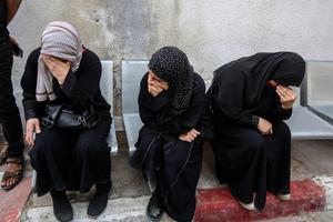 (250519) -- GAZA, 19 mayo, 2025 (Xinhua) -- Imagen del 18 de mayo de 2025 de palestinas lamentándose después de...
