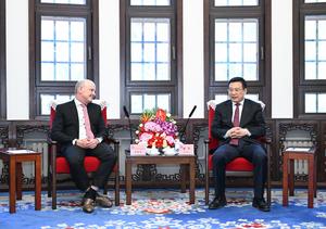 (250519) -- BEIJING, 19 mayo, 2025 (Xinhua) -- El presidente de la Agencia de Noticias Xinhua, Fu Hua, se reúne...
