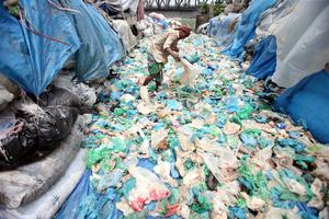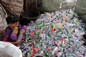(250519) -- DHAKA, 19 mayo, 2025 (Xinhua) -- Imagen del 7 de mayo de 2025 de recolectoras de basura clasificando...
