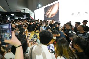 (250519) -- CHENGDU, 19 mayo, 2025 (Xinhua) -- Clientes prueban las computadoras portátiles de Huawei con tecnología HarmonyOS después del...