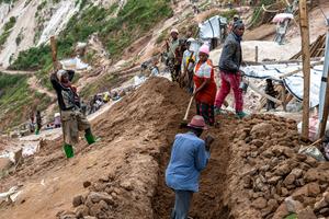 (250520) -- RUBAYA, 20 mayo, 2025 (Xinhua) -- Imagen del 7 de mayo de 2025 de mineros trabajando en un...