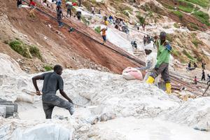 (250520) -- RUBAYA, 20 mayo, 2025 (Xinhua) -- Imagen del 7 de mayo de 2025 de mineros cargando mineral excavado...