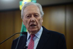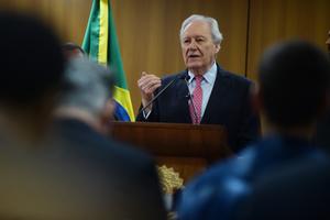 (250519) -- BRASILIA, 19 mayo, 2025 (Xinhua) -- El ministro brasileño de Justicia, Ricardo Lewandowski, habla durante una conferencia de...