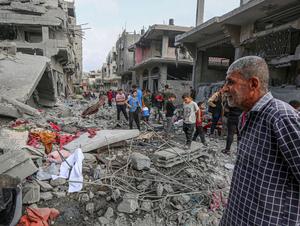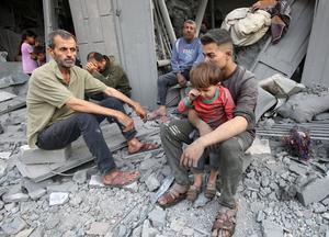 (250519) -- GAZA, 19 mayo, 2025 (Xinhua) -- Imagen del 18 de mayo de 2025 de palestinos vistos entre los...
