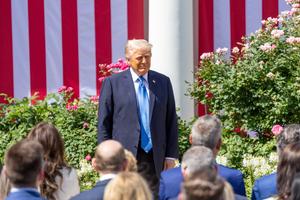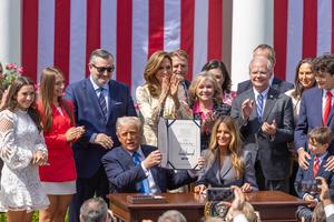 (250519) -- WASHINGTON, 19 mayo, 2025 (Xinhua) -- El presidente estadounidense, Donald Trump, asiste a la ceremonia de firma del...