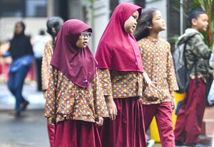 (250519) -- YAKARTA, 19 mayo, 2025 (Xinhua) -- Imagen del 16 de mayo de 2025 de niñas portando batik de...