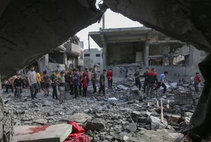 (250519) -- GAZA, 19 mayo, 2025 (Xinhua) -- Imagen del 18 de mayo de 2025 de palestinos vistos entre los...