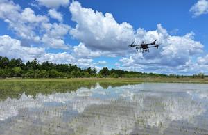 (250521) -- BEIJING, 21 mayo, 2025 (Xinhua) -- Un dron de protección de cultivos aplica fertilizante sobre un campo de arroz de una empresa agrícola de la filial del Grupo Beidahuang, en la provincia de Heilongjiang, en el noreste de China, el 21 de mayo de 2025. El término solar tradicional chino Xiaoman (brotes de grano) cae el 21 de mayo de este año, lo que indica que las semillas de los granos están madurando. (Xinhua/Li Xing) (jg) (da) (ce)