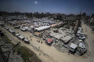 (250521) -- GAZA, 21 mayo, 2025 (Xinhua) -- Imagen del 20 de mayo de 2025 de un refugio temporal en el campamento de refugiados de Jabalia, en el norte de la Franja de Gaza. Más de 28.000 mujeres y niñas han sido asesinadas en Gaza desde el comienzo de la guerra en Gaza en octubre de 2023, según ONU Mujeres. (Xinhua/Mahmoud Zaki) (ah) (ra) (ce)
