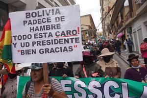 (250526) -- LA PAZ, 26 mayo, 2025 (Xinhua) -- Personas sostienen pancartas durante una marcha en contra del presidente boliviano,...