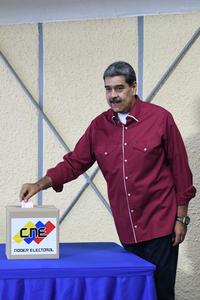 (250525) -- CARACAS, 25 mayo, 2025 (Xinhua) -- El presidente venezolano, Nicolás Maduro, emite su voto durante las elecciones regionales...
