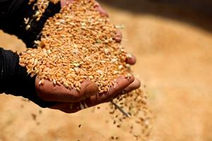 (250525) -- BEIJING, 25 mayo, 2025 (Xinhua) -- Un agricultor muestra trigo recién cosechado, en la aldea de Shagou de...