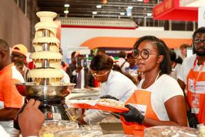 (250525) -- ABIYÁN, 25 mayo, 2025 (Xinhua) -- Imagen del 23 de mayo de 2025 de empleados preparando postres para...