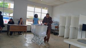 (250525) -- WANICA, 25 mayo, 2025 (Xinhua) -- Imagen cedida por Suriname Herald de un hombre emitiendo su voto en un colegio electoral durante las elecciones presidenciales, en el distrito de Wanica, Surinam, el 25 de mayo de 2025. (Xinhua/Suriname Herald) (oa) (da)