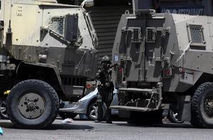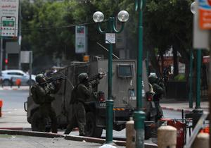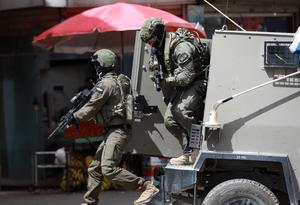 (250527) -- HEBRÓN, 27 mayo, 2025 (Xinhua) -- Un miembro de las fuerzas israelíes lleva a cabo una operación, en...