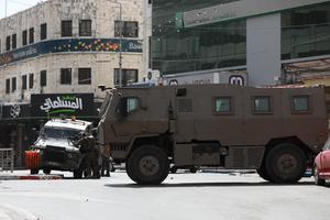 (250527) -- NAPLUSA, 27 mayo, 2025 (Xinhua) -- Miembros de las fuerzas israelíes llevan a cabo una operación, en la...
