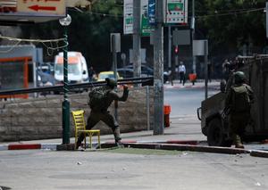 (250527) -- NAPLUSA, 27 mayo, 2025 (Xinhua) -- Un miembro de las fuerzas israelíes lleva a cabo una operación, en...