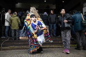(250527) -- BUENOS AIRES, 27 mayo, 2025 (Xinhua) -- Una mujer se cubre con una manta con la imagen del...