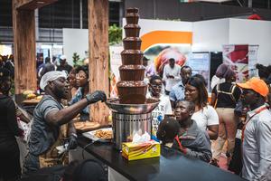 (250527) -- ABIYÁN, 27 mayo, 2025 (Xinhua) -- Imagen del 26 de mayo de 2025 de visitantes formándose para degustar...