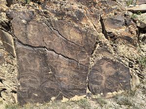 (250528) -- URUMQI, 28 mayo, 2025 (Xinhua) -- Imagen sin fechar de pinturas rupestres antiguas en la región norte del lago Sayram, en la región autónoma uygur de Xinjiang, en el noroeste de China. Arqueólogos han descubierto 30 pinturas rupestres antiguas en la región norte del lago Sayram, en la región autónoma uygur de Xinjiang, en el noroeste de China, lo que marca el primer descubrimiento de este tipo en la zona. (Xinhua/Yuan Junxia) (ah) (ra) (ce)