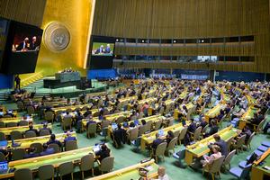 (250528) -- NACIONES UNIDAS, 28 mayo, 2025 (Xinhua) -- Imagen del 27 de mayo de 2025 de la Asamblea General de la ONU sosteniendo una reunión para elegir a un juez de la Corte Internacional de Justicia (CIJ), en la sede de la ONU, en Nueva York. El embajador de Jordania ante la ONU, Mahmoud Hmoud, fue elegido el martes juez de la CIJ para reemplazar a Nawaf Salam, quien dimitió en enero tras su nombramiento como primer ministro libanés. (Xinhua/Manuel Elias/UN Photo) (jg) (da) (ce)