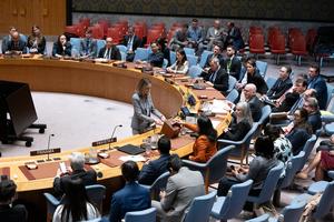 (250528) -- NACIONES UNIDAS, 28 mayo, 2025 (Xinhua) -- Imagen del 27 de mayo de 2025 de una funcionaria de conferencias recogiendo papeletas durante una reunión del Consejo de Seguridad de la ONU para elegir a un juez de la Corte Internacional de Justicia (CIJ), en la sede de la ONU, en Nueva York. El embajador de Jordania ante la ONU, Mahmoud Hmoud, fue elegido el martes juez de la CIJ para reemplazar a Nawaf Salam, quien dimitió en enero tras su nombramiento como primer ministro libanés. (Xinhua/Evan Schneider/UN Photo) (jg) (da) (ce)