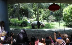 (250629) -- CIUDAD DE MEXICO, 29 junio, 2025 (Xinhua) -- La panda gigante Xin Xin disfruta de su alimento durante...