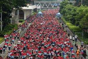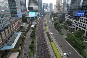 (250629) -- YAKARTA, 29 junio, 2025 (Xinhua) -- Participantes corren durante el Maratón Internacional de Yakarta 2025, en Yakarta, Indonesia,...