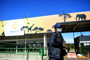 (250529) -- BRASILIA, 29 mayo, 2025 (Xinhua) -- Un trabajador de seguridad controla el ingreso de vehículos dentro de una...