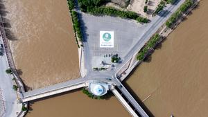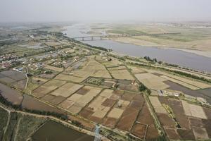 (250529) -- BAYANNUR, 29 mayo, 2025 (Xinhua) -- Vista aérea tomada con un dron el 28 de mayo de 2025...