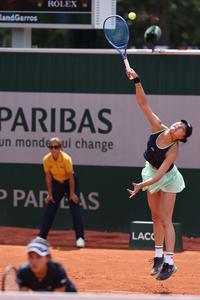 (250529) -- PARIS, 29 mayo, 2025 (Xinhua) -- Elixane Lechemia (i)/Harmony Tan reaccionan durante el partido de primera ronda de...