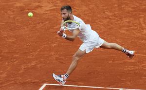 (250530) -- PARIS, 30 mayo, 2025 (Xinhua) -- Imagen del 29 de mayo de 2025 de Corentin Moutet, de Francia,...