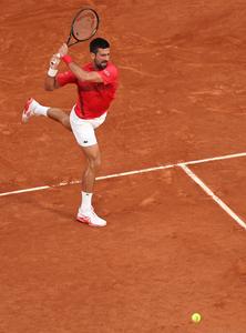 (250601) -- PARÍS, 1 junio, 2025 (Xinhua) -- Imagen del 31 de mayo de 2025 de Novak Djokovic devolviendo la...