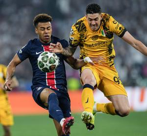 (250601) -- MUNICH, 1 junio, 2025 (Xinhua) -- Imagen del 31 de mayo de 2025 de Desire Doue (i), de...