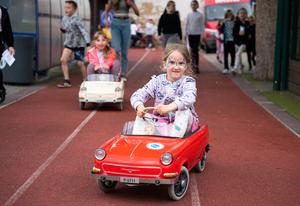 (250531) -- PRAGA, 31 mayo, 2025 (Xinhua) -- Imagen del 30 de mayo de 2025 de niñas probando vehículos de...