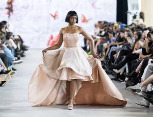 (250601) -- TORONTO, 1 junio, 2025 (Xinhua) -- Imagen del 31 de mayo de 2025 de una modelo presentando una...