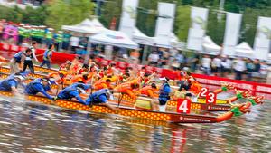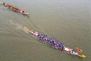 (250531) -- TANGERANG, 31 mayo, 2025 (Xinhua) -- Personas compiten en una carrera de botes del dragón en celebración del...
