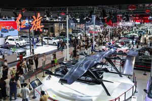(250531) -- SHENZHEN, 31 mayo, 2025 (Xinhua) -- Un automóvil volador de Hongqi es exhibido en el Salón Internacional del...