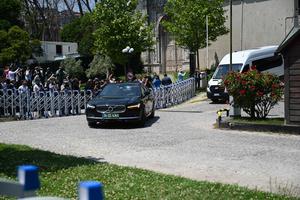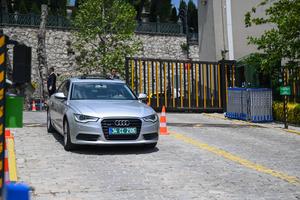 (250602) -- ESTAMBUL, 2 junio, 2025 (Xinhua) -- Un vehículo transportando a miembros de la delegación rusa llega al Palacio...