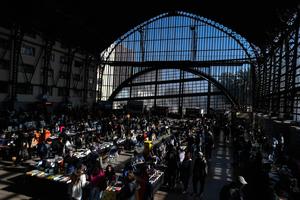 (250602) -- SANTIAGO, 2 junio, 2025 (Xinhua) -- Imagen del 31 de mayo de 2025 de personas observando libros durante...